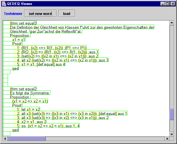 2003-05-11 A syntax parser for the QEDEQ format generates from the formal description of an QEDEQ module an XML-DTD. See QEDEQ DTD (comments in German).